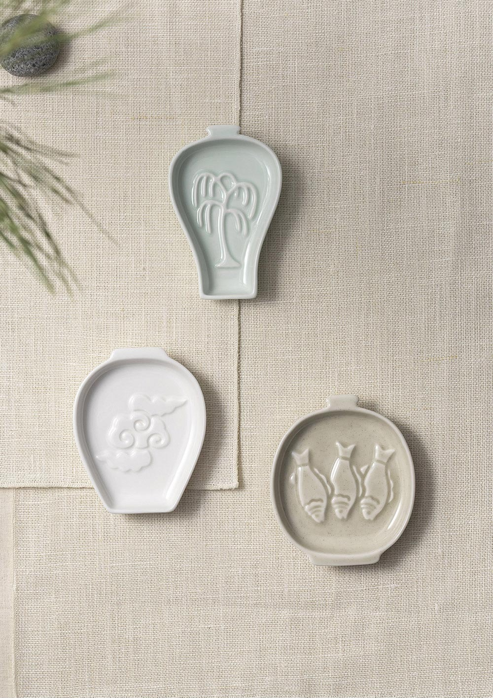 Celadon (60 x 90 x 15 mm), White Porcelain (70 x 85 x 15 mm), Buncheong (75 x 86 x 15 mm)