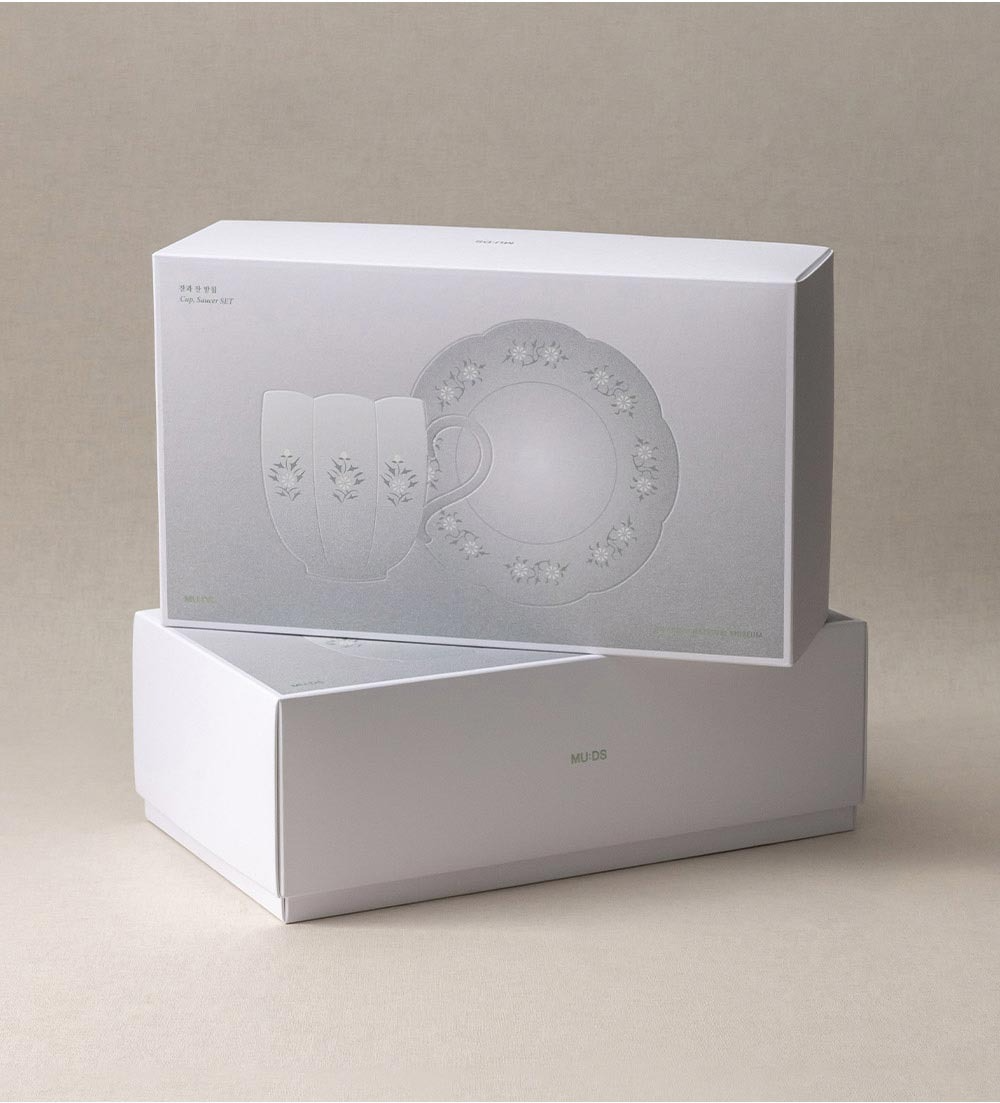Experience the serene elegance of Korean heritage with the Goryeo Celadon Chrysanthemum Cup and Saucer Set. This exquisite piece is a modern reinterpretation of 1,000 years of Korean ceramic history, born from an exclusive collaboration between the National Museum of Korea's brand MU:DS and the renowned ceramic house SSUEIM.