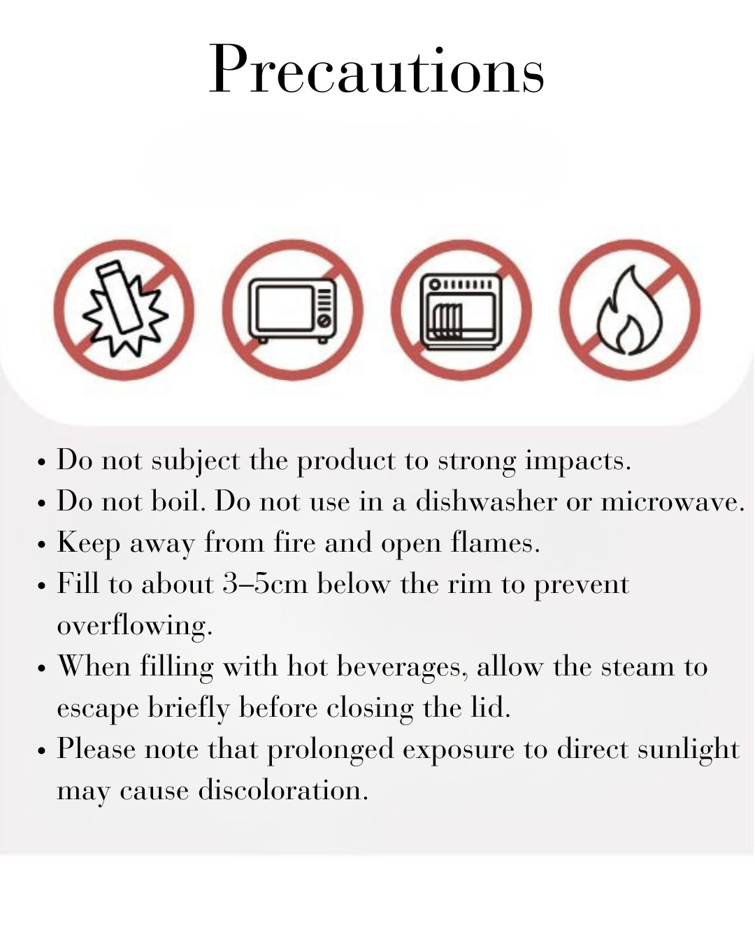 • No Microwave: Do not use in a microwave or oven.