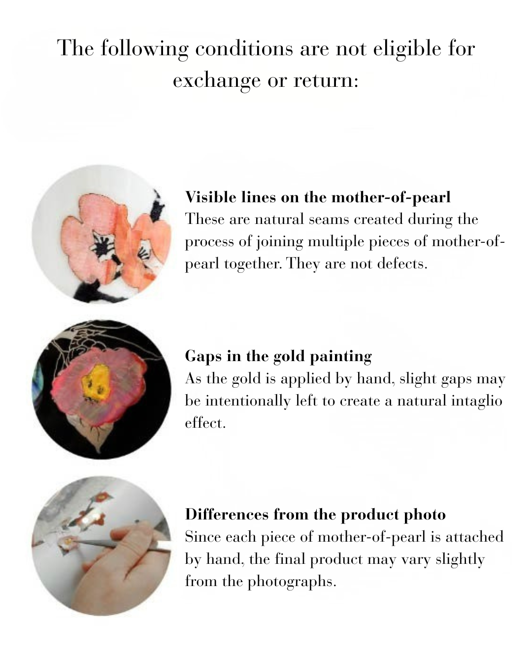 • Artisanal Note: Because each piece is inlaid by hand using natural mother-of-pearl, slight variations in the iridescent pattern or finish are a hallmark of its authenticity, not a defect.