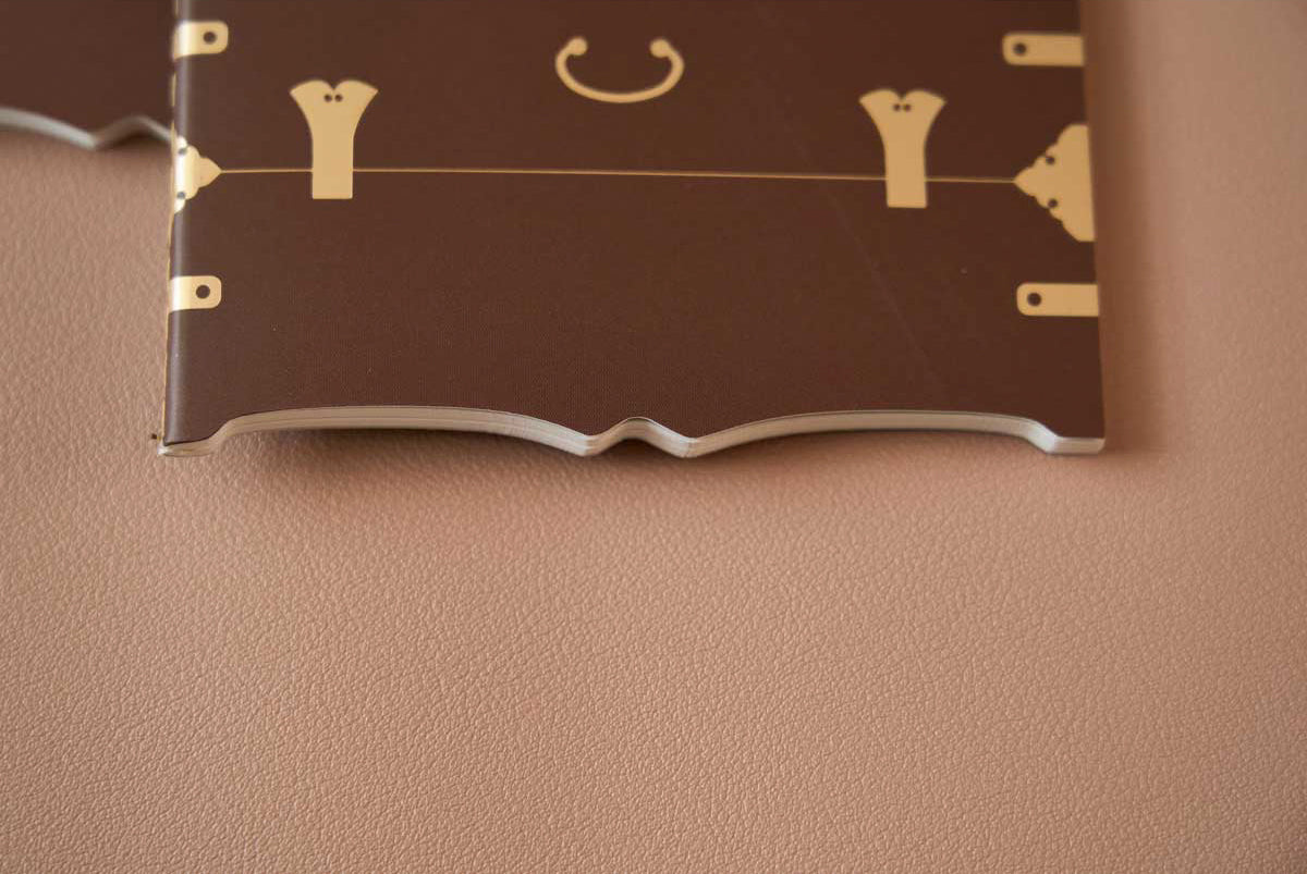 The notebook’s cover features gold foil detailing reminiscent of the chest’s original brass fixtures, while the distinctive curved bottom edge mimics the unique contour of the furniture piece. It’s not just a notebook—it’s a small cultural artifact you can carry in your bag.